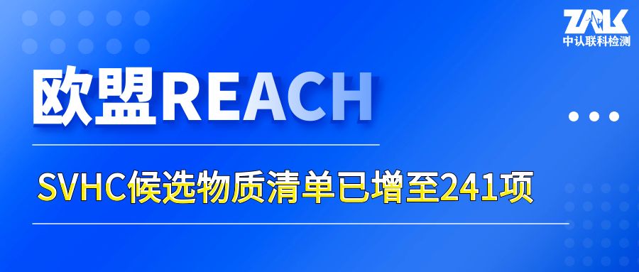 2024年6月27日,欧盟化学品管理局(ECHA)正式公布REACH候选清单的第31批新增1项SVHC物质,至此,REACH高度关注物质清单正式增至241项。