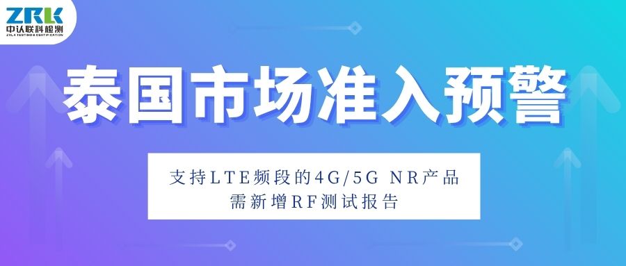 泰国国家广播及电信局委员会(NBTC)宣布,自2025年7月7日起,支持LTE频段4G(32、75、76)及5G NR(n32、n75、n76)的产品,需提交RF测试报告,以获取NBTC Class B类认证。