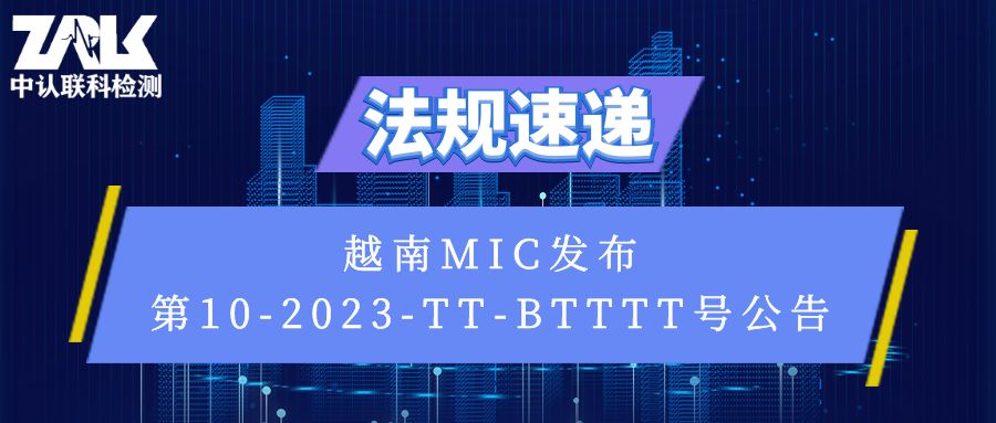 2023年9月5日,越南信息通信部(MIC)发布第10/2023/TT-BTTTT号公告,暂时停止执行适用于5G、Wi-Fi、NFC、无线充电设备、部分船用设备和其他几类设备的若干QCVN技术法规(部分或全部),以消除第04/2023/TT-BTTTT号公告实施合格认证、合格声明和产品质量检验的障碍。