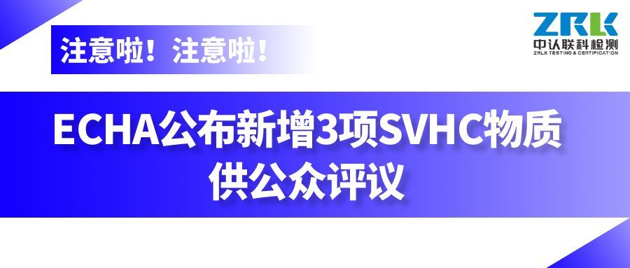 2025年9月1日,欧盟化学品管理局(ECHA)公布了新一批SVHC咨询物质清单,对3项潜在的SVHC物质展开公众评议。公众评议于2025年10月16日结束,在此期间各利益相关方均可向ECHA提交评议意见。ECHA将会对公众提交的反馈意见进行评议,如这3项物质通过评议将被加入SVHC正式候选清单。
