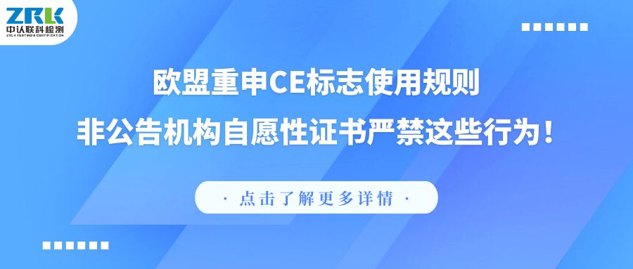 近日,为消除消费者对证书性质的误解,确保CE标志作为欧盟强制性符合性声明的权威性和清晰度,欧盟再次重申了2022年6月29日发布的CE标志的使用规则COMMISSION NOTICE《The ‘Blue Guide’ on the implementation of EU product rules 2022》。该规则特别指出:自愿性证书中不得使用“certification”、“independent third party”等字样,且严禁出现CE标志。
